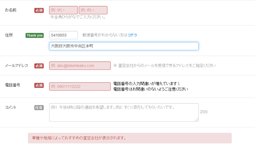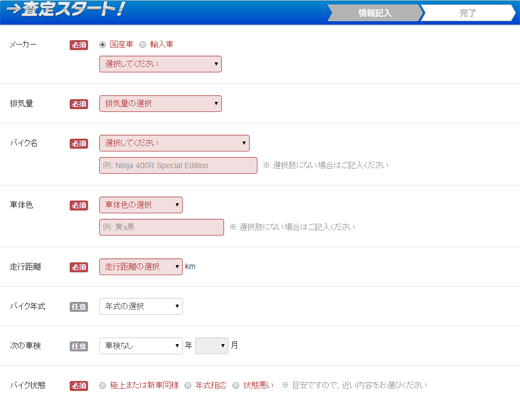 タイピングやキー操作に不慣れな人でも、ここまで全て入力するのに10分程度で済むはず。できるだけ記入事項を控え、選択項目を増やし、誰でも簡単に入力できるように設定してあるので、忙しい人でも、オンライン査定が初めてだという人でも大丈夫です。