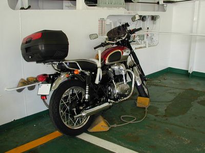 乗船ゲートから船内に入り、係の人がバイクを船内に固定してくれます。丁寧に案内してくれますので、初めてでも迷うことはないでしょう。